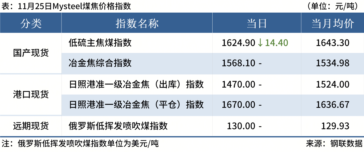 ◎ 11月25日,全國主港鐵礦石成交97.50萬噸,環(huán)比減13%;237家主流貿(mào)易商建筑鋼材成交10.14萬噸,環(huán)比減22.7%。