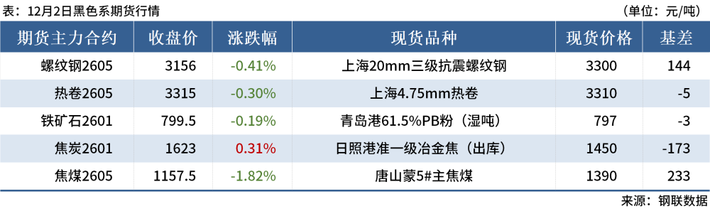 ◎四川都鋼鋼鐵于2025年12月2日臨時停產(chǎn),預(yù)計到12月6日復(fù)產(chǎn),減少建筑鋼材日產(chǎn)約2000噸左右。