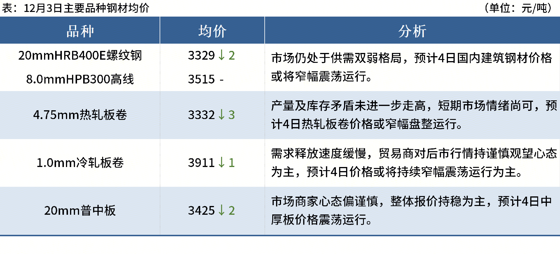 ◎12月3日,全國(guó)主港鐵礦石成交119.10萬(wàn)噸,環(huán)比減4.1%;237家主流貿(mào)易商建筑鋼材成交8.98萬(wàn)噸,環(huán)比減8.6%。