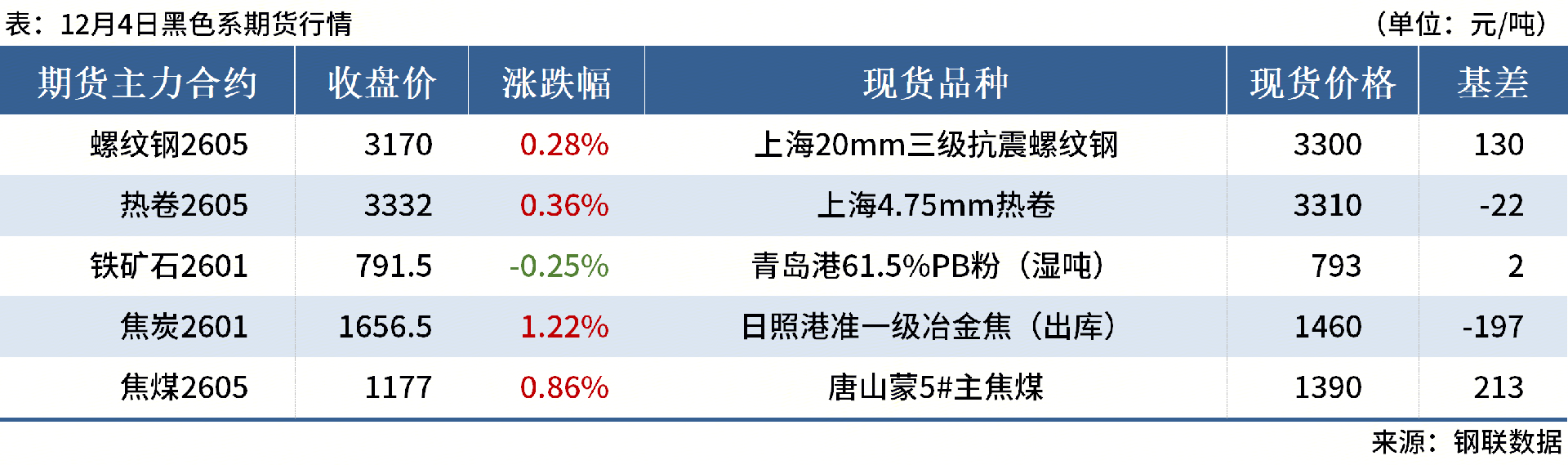 ◎12月4日,全國主港鐵礦石成交126.60萬噸,環(huán)比增6.3%;237家主流貿(mào)易商建筑鋼材成交9.39萬噸,環(huán)比增4.5%。