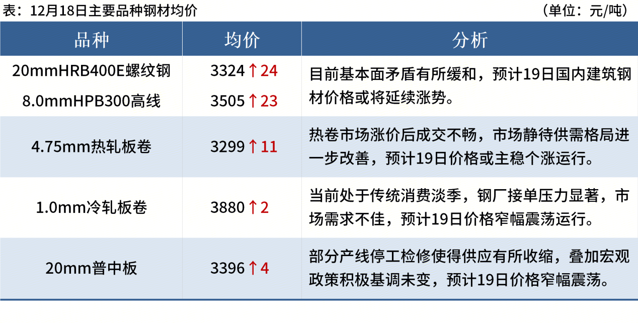◎12月18日,全國主港鐵礦石成交98.20萬噸,環(huán)比增18.2%;237家主流貿(mào)易商建筑鋼材成交10.22萬噸,環(huán)比增2.8%。