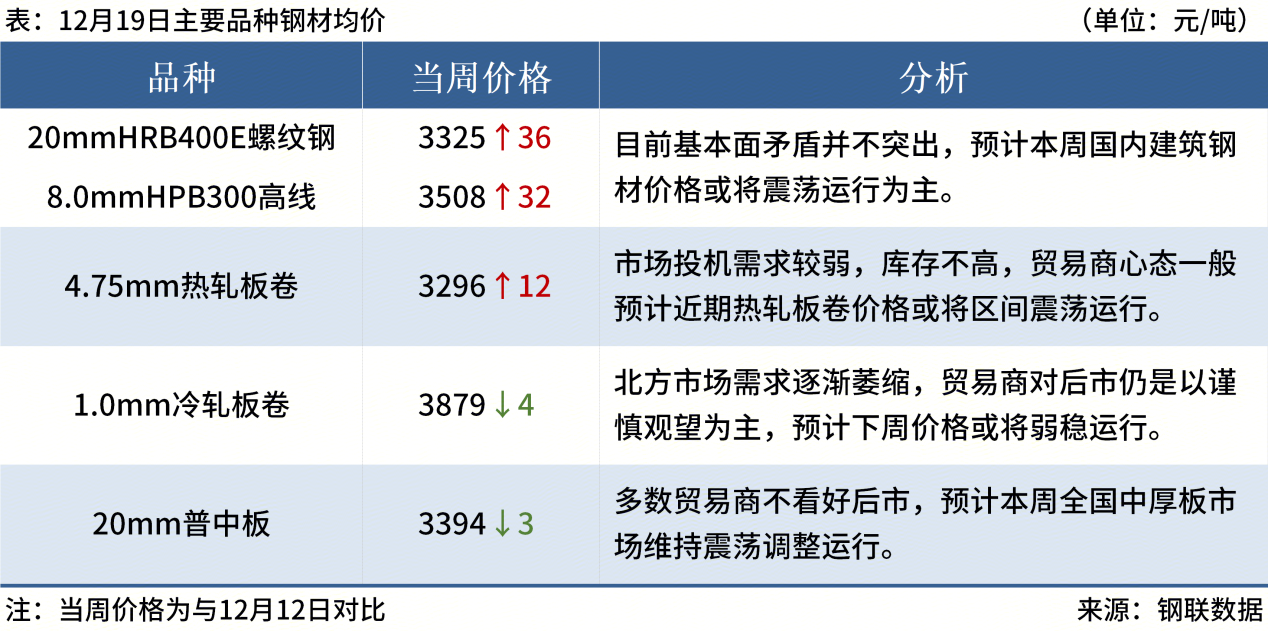 ◎ 12月19日,全國主港鐵礦石成交87.05萬噸,環(huán)比減11.4%;237家主流貿(mào)易商建筑鋼材成交9.42萬噸,環(huán)比減7.9%。