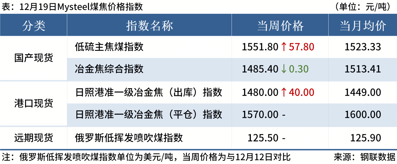 ◎ 12月19日,河北、天津地區(qū)部分鋼廠對(duì)焦炭提降第三輪,對(duì)濕熄焦炭下調(diào)50元/噸、干熄焦炭下調(diào)55元/噸,2025年12月22日零點(diǎn)執(zhí)行,預(yù)計(jì)周一焦炭第三輪提降全面落地。