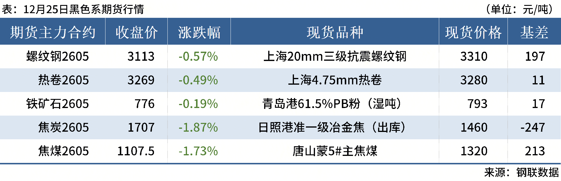 ◎ 12月25日,全國(guó)主港鐵礦石成交134.10萬(wàn)噸,環(huán)比增4.1%;237家主流貿(mào)易商建筑鋼材成交8.25萬(wàn)噸,環(huán)比減13.9%。