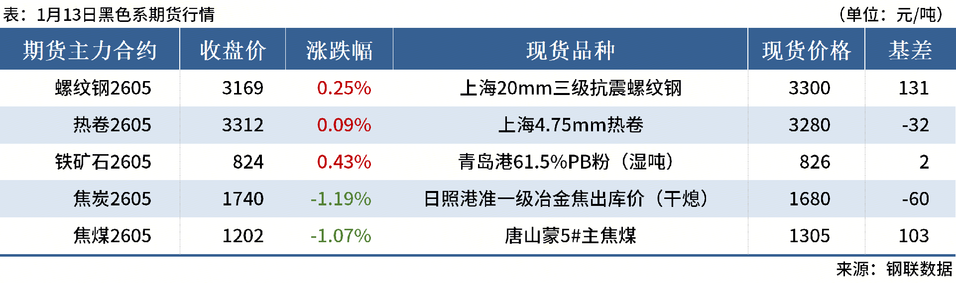 ◎1月13日,全國(guó)主港鐵礦石成交84.10萬(wàn)噸,環(huán)比增11.8%;237家主流貿(mào)易商建筑鋼材成交8.36萬(wàn)噸,環(huán)比減20.9%。