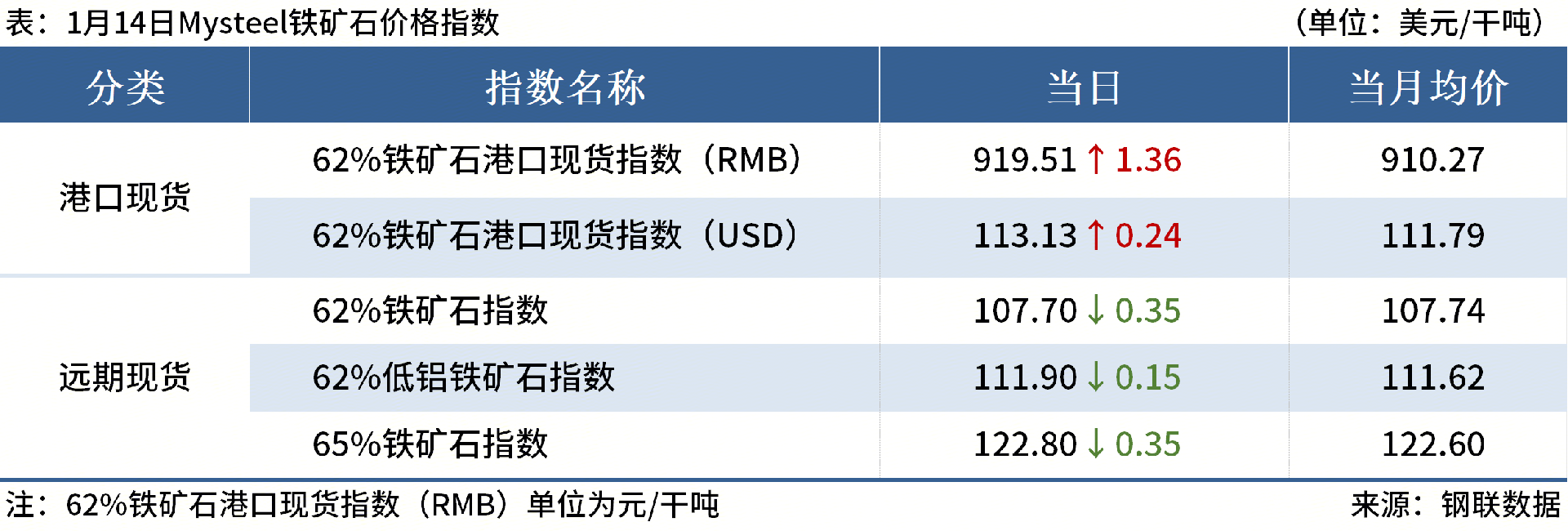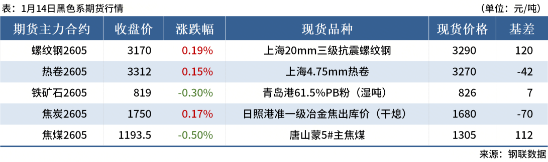 ◎1月14日,全國主港鐵礦石成交123.10萬噸,環(huán)比增46.4%;237家主流貿(mào)易商建筑鋼材成交8.86萬噸,環(huán)比增5.9%。