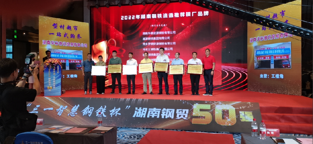 公司應(yīng)邀參加“智慧漣鋼”第三屆中國(guó)(中部)鋼鐵產(chǎn)業(yè)鏈發(fā)展論壇6月23日下午,由湖南省工商聯(lián)指導(dǎo),湖南省金屬材料商會(huì)主辦,我公司協(xié)辦的“智慧漣鋼”第三屆中國(guó)(中部)鋼鐵產(chǎn)業(yè)鏈發(fā)展論壇暨“三一智慧鋼鐵杯”湖南鋼貿(mào)50強(qiáng)系列評(píng)選頒獎(jiǎng)盛典在長(zhǎng)沙隆重舉行。我公司供銷副總韓文濤和銷售部長(zhǎng)郭曉衛(wèi)參與本次會(huì)議。我公司產(chǎn)品以良好的知名度···